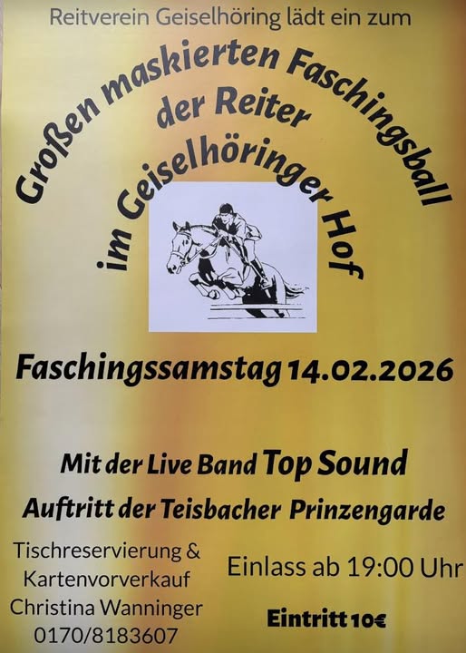 Einladung zum großen maskierten Faschingsball der Reiter im Geiselhöringer Hof